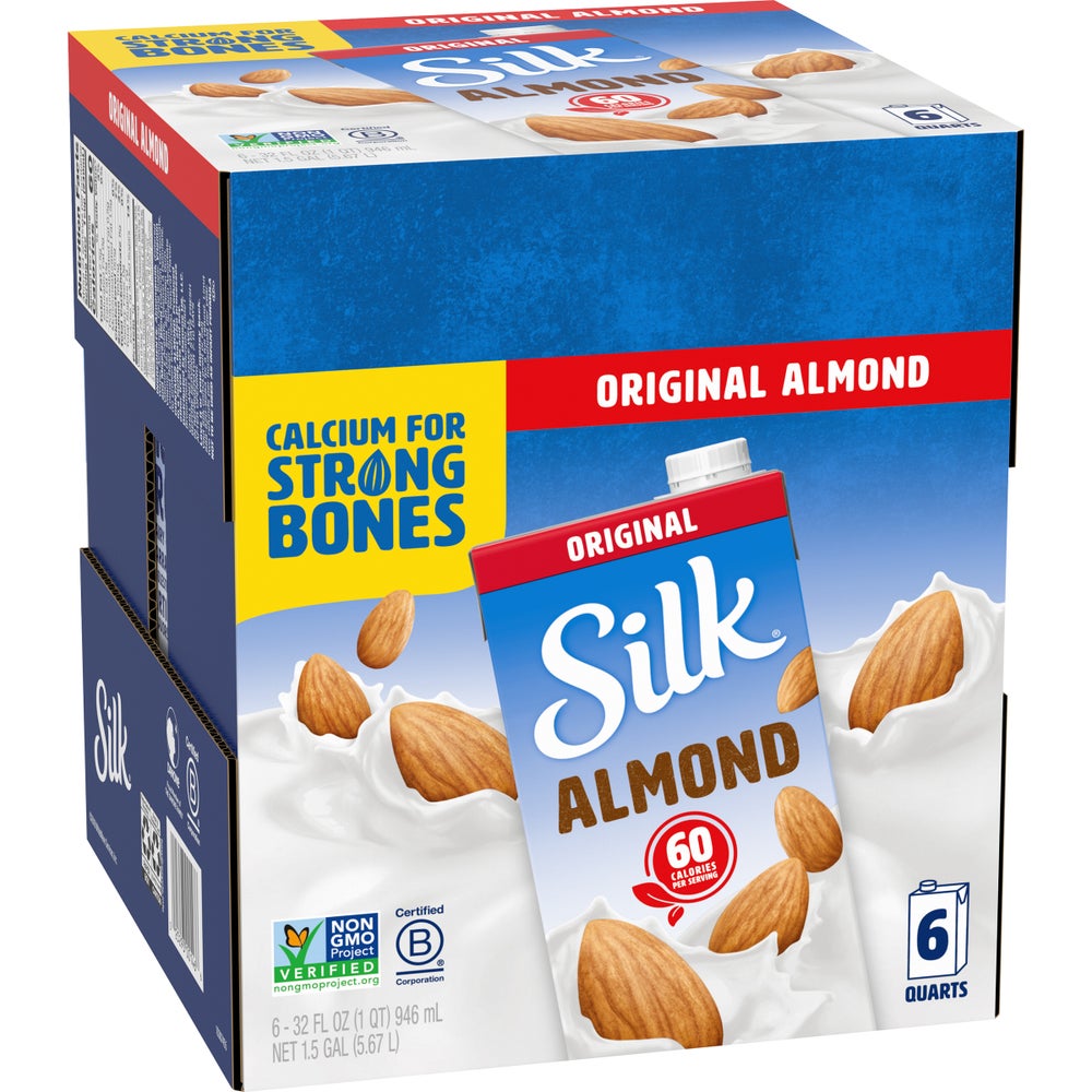 Silk Lactose Free Original Almond Milk, Shelf-Stable, 32 Fl Oz Carton, 6/Case