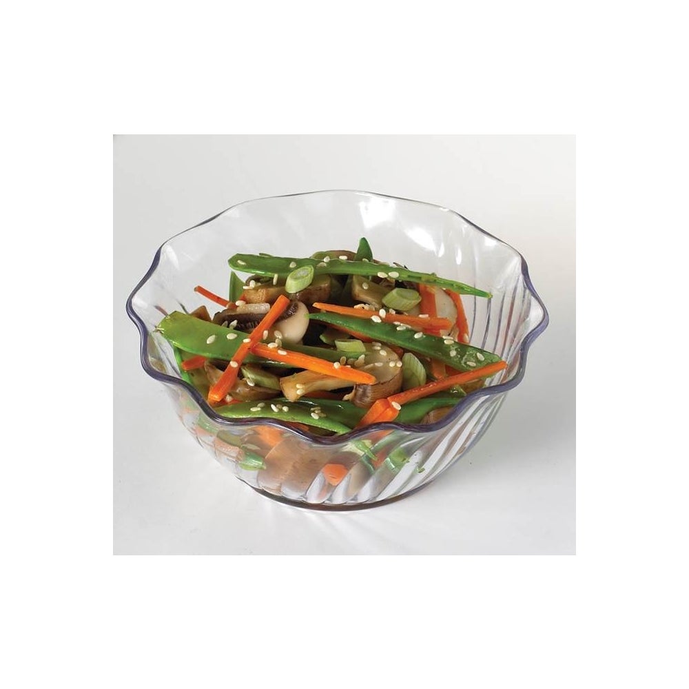 Versatile enough for hot or cold applications, these elegant plastic dishes are designed to stack easily with other glass or plastic dessert dishes. Ideal for serving ice creams, puddings, and salads.