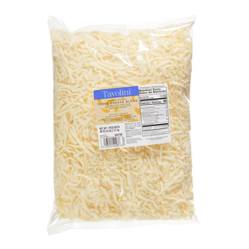 - This cheese is shredded for fast preparation time and reduced labor and comes in five-pound bags, four per case.