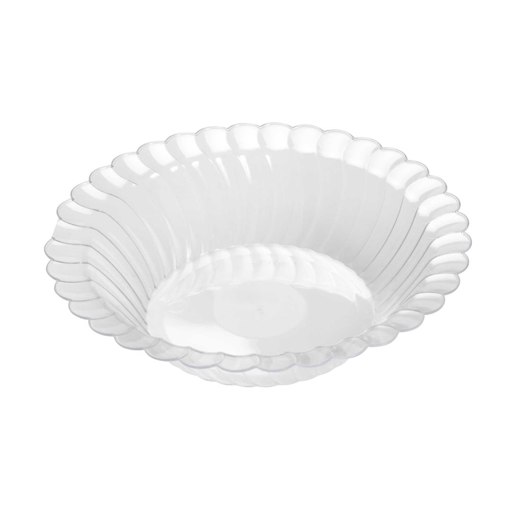 This Fineline brand 10 Ounce plastic bowl is clear with scalloped edges. The design blends well with most any decor or theme.