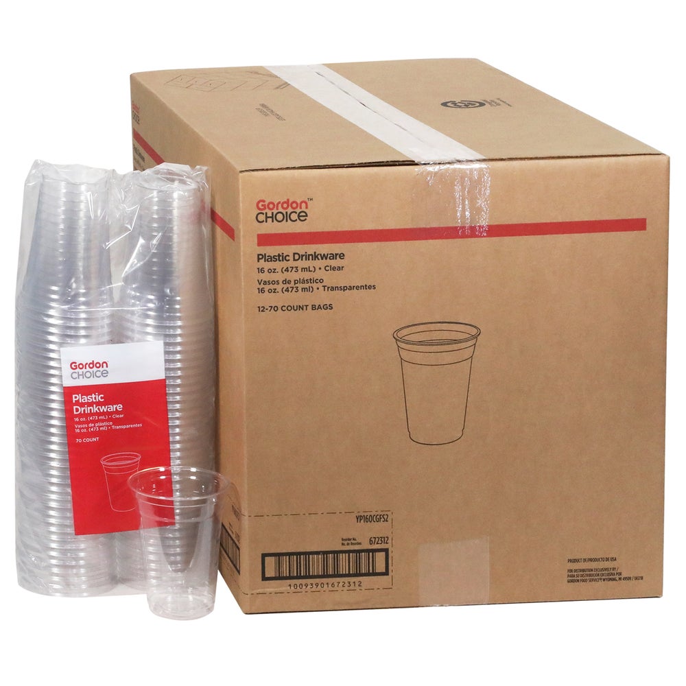 Gordon Choice 16 Ounce Plastic Cold Cups, Clear, PET, 70 Ct Package, 12/Case