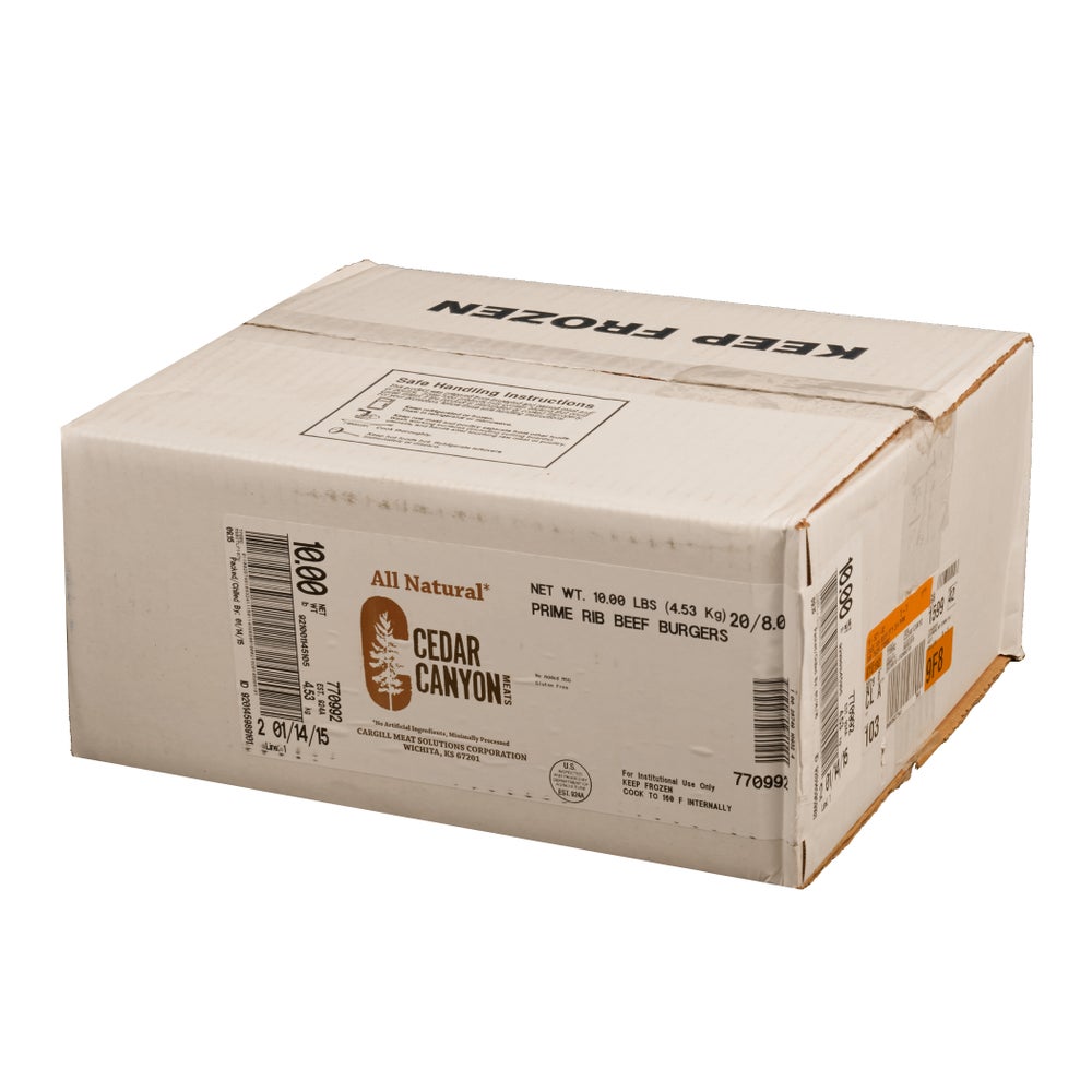 Cedar Canyon Ground Prime Rib Beef Patties, 75% Lean, 8 Ounce, Frozen, 8 Oz Package, 20/Case