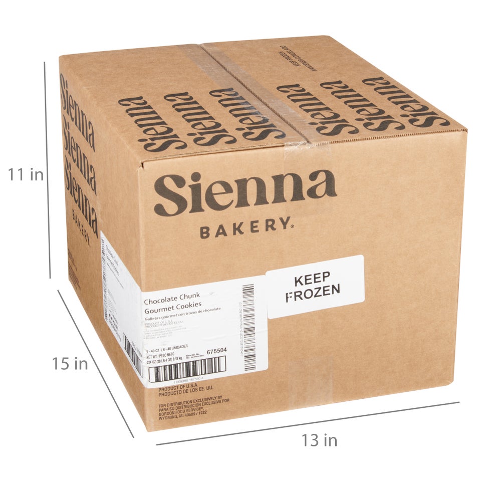 Sienna Bakery Gourmet Soft Chocolate Chunk Cookies, Frozen, 1.35 Ounce, 40 Ct Box, 6/Case