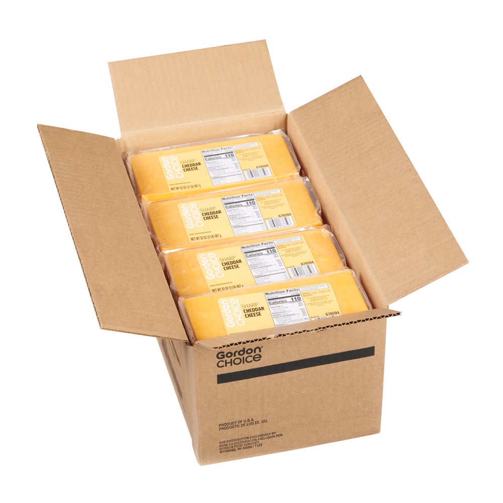 Gordon Choice Sharp Cheddar Cheese, Chunk, Individually Wrapped, 2 Lb Block, 12/Case