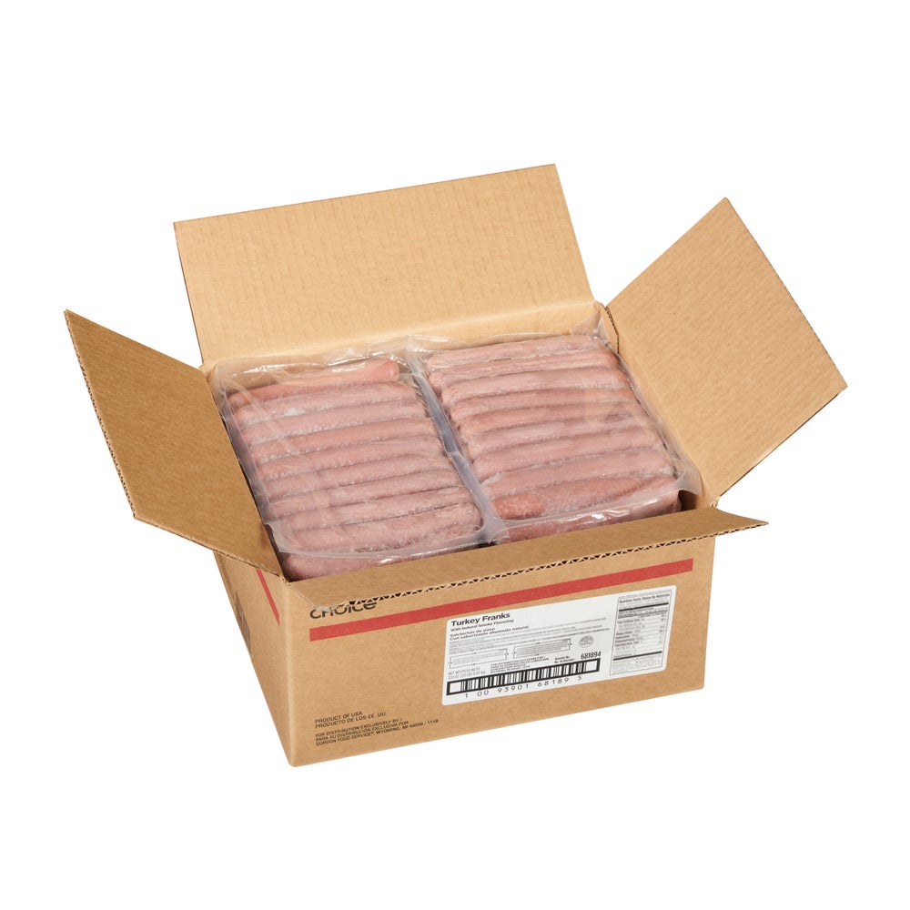 Gordon Choice Turkey Franks, 8 Count per Pound, Frozen, 2 Ounce, 5 Lb Package, 4/Case