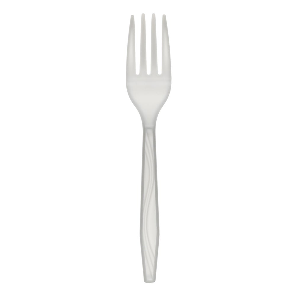 - Made from durable polystyrene, this white fork stands up to the toughest food demands.