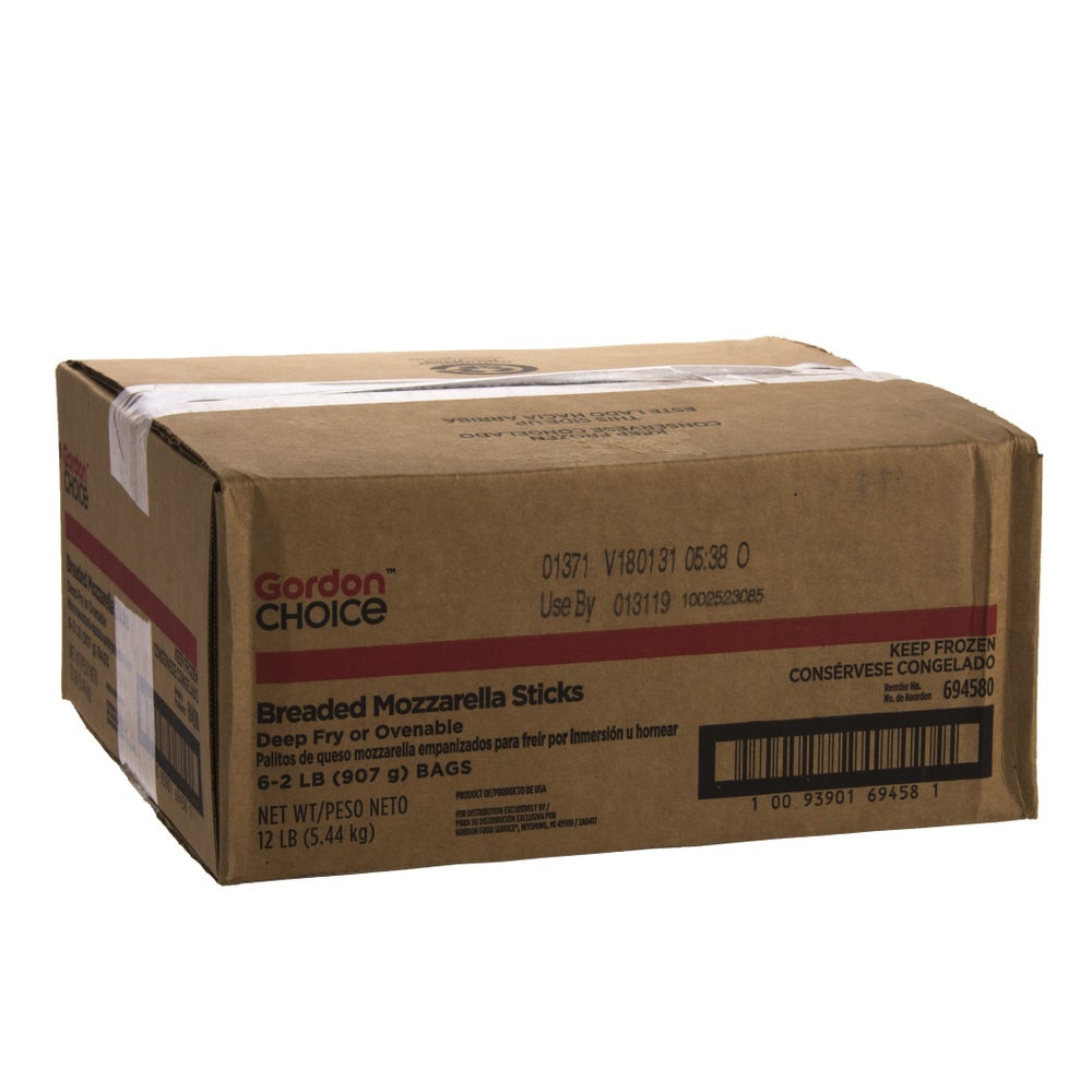 Gordon Choice Breaded Mozzarella Cheese Sticks, 3 Inch, Ovenable, IQF, 2 Lb Bag, 6/Case