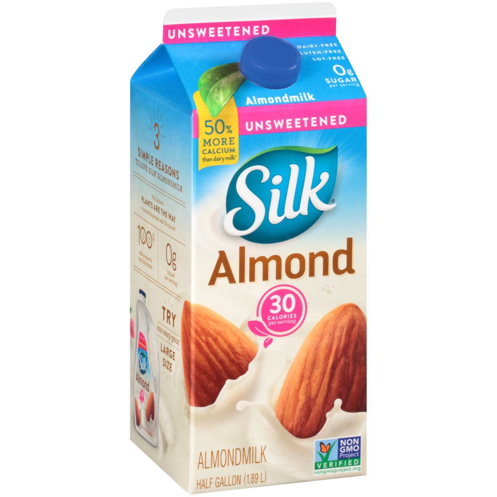 This Silk brand of almond milk is unsweetened. It is a good dairy-free alternative that can be used over cereal, added to smoothies or enjoyed all by itself as a drink.
