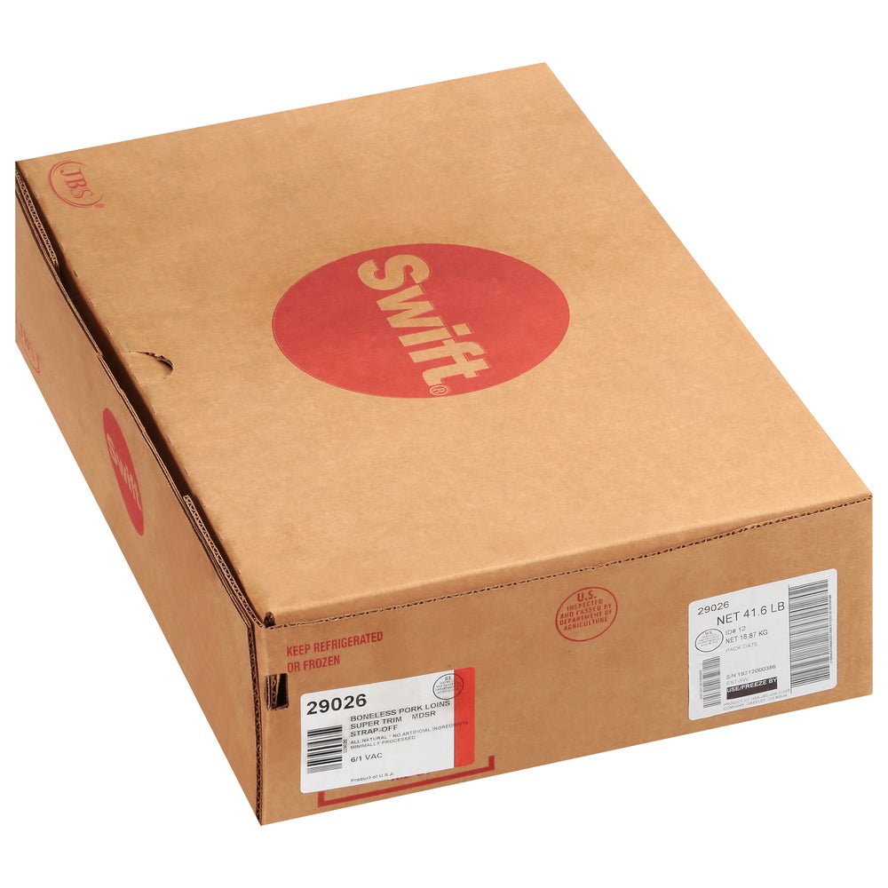 Packer Label Natural Pork Loin, Boneless, Center-Cut Strap-Off, 1/8 Inch Trim 8 Pound Average, (NAMP 414) Fresh, 8 Lb Avg Package, 6/Case