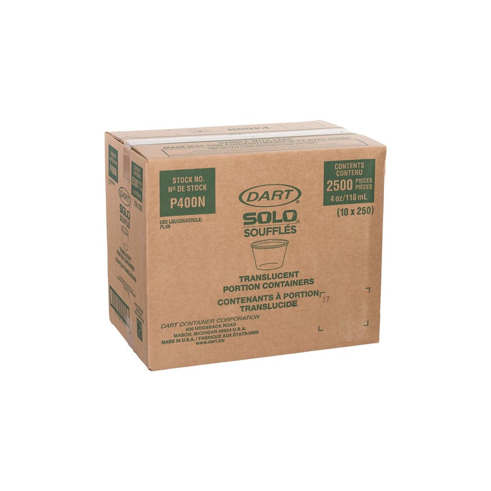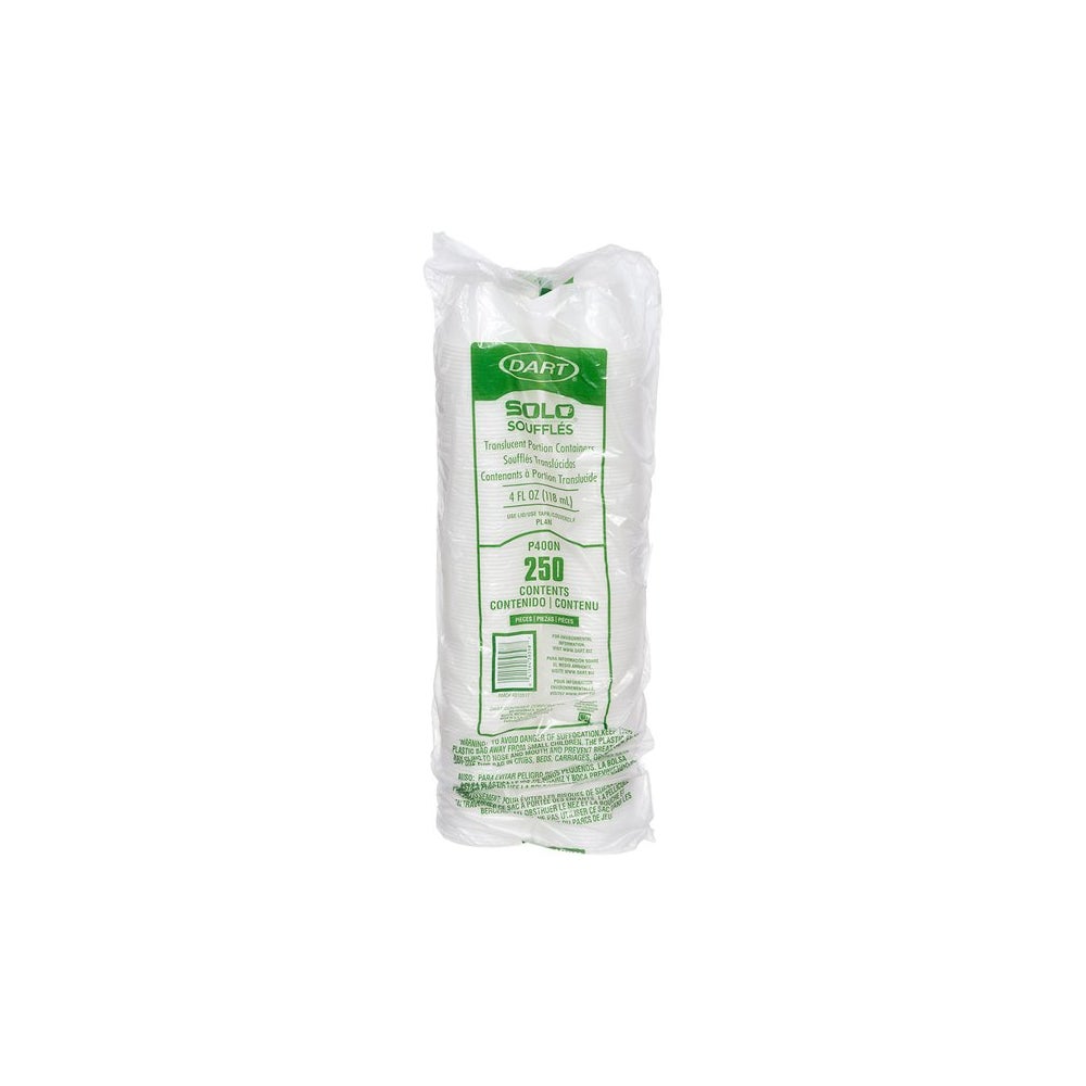 Dart 4 Ounce Plastic Souffle Portion Cups, Translucent, Polystyrene, 250 Ct Package, 10/Case