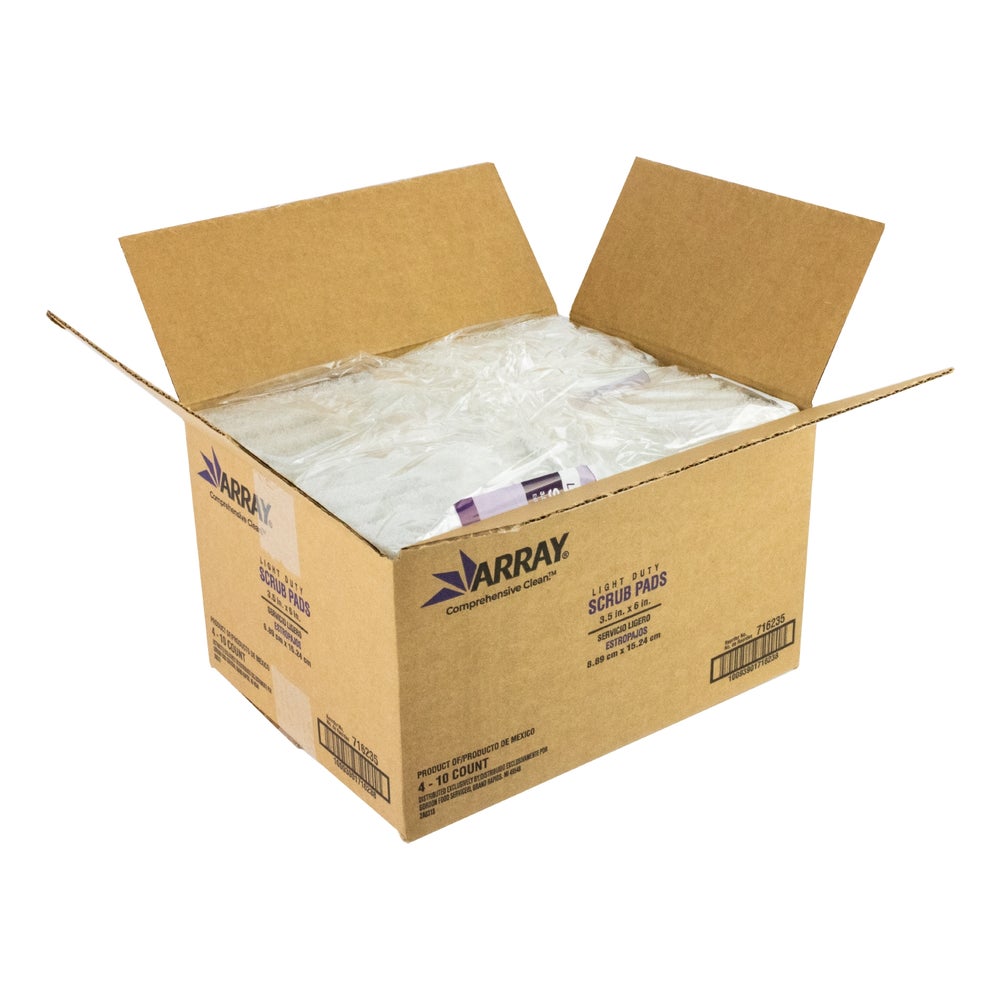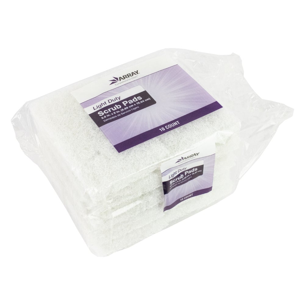 Array Light-Duty Scrub Pads, White, 3.5 x 5 Inch, 10 Ct Package, 4/Case