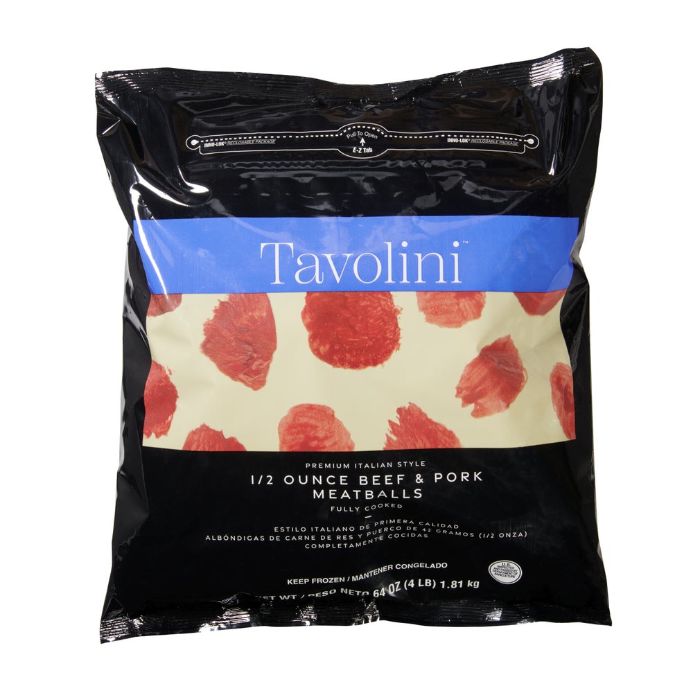 Tavolini - Premium Italian-Style Baked Beef & Pork Meatballs, with Romano Cheese, 0.5 Ounce, Cooked, Frozen, 4 Lb Bag, 3/Case