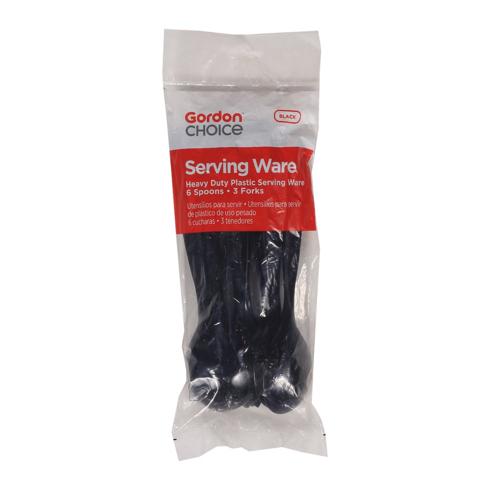 Gordon Choice 9.5 Inch Heavyweight Plastic Servingware Spoons & Forks, Black, Polypropylene, 9 Ct Bag, 12/Case