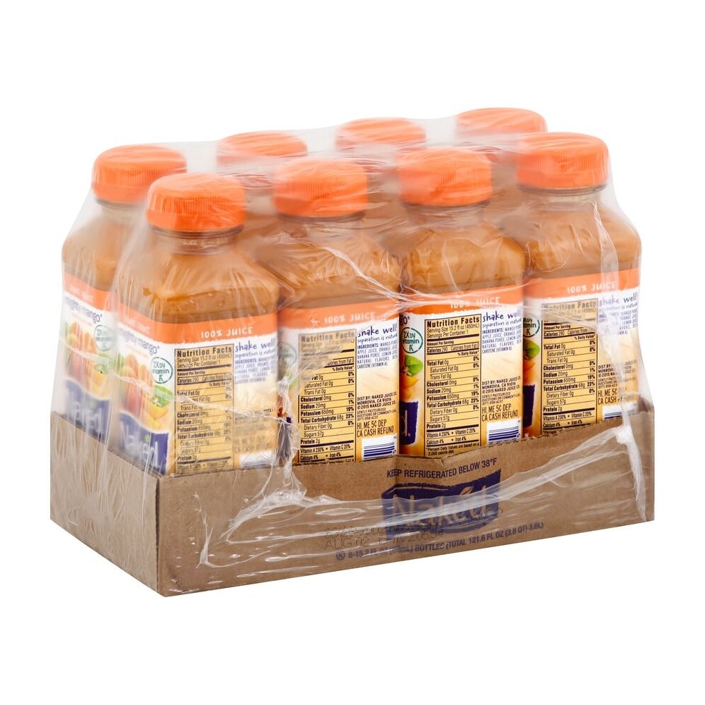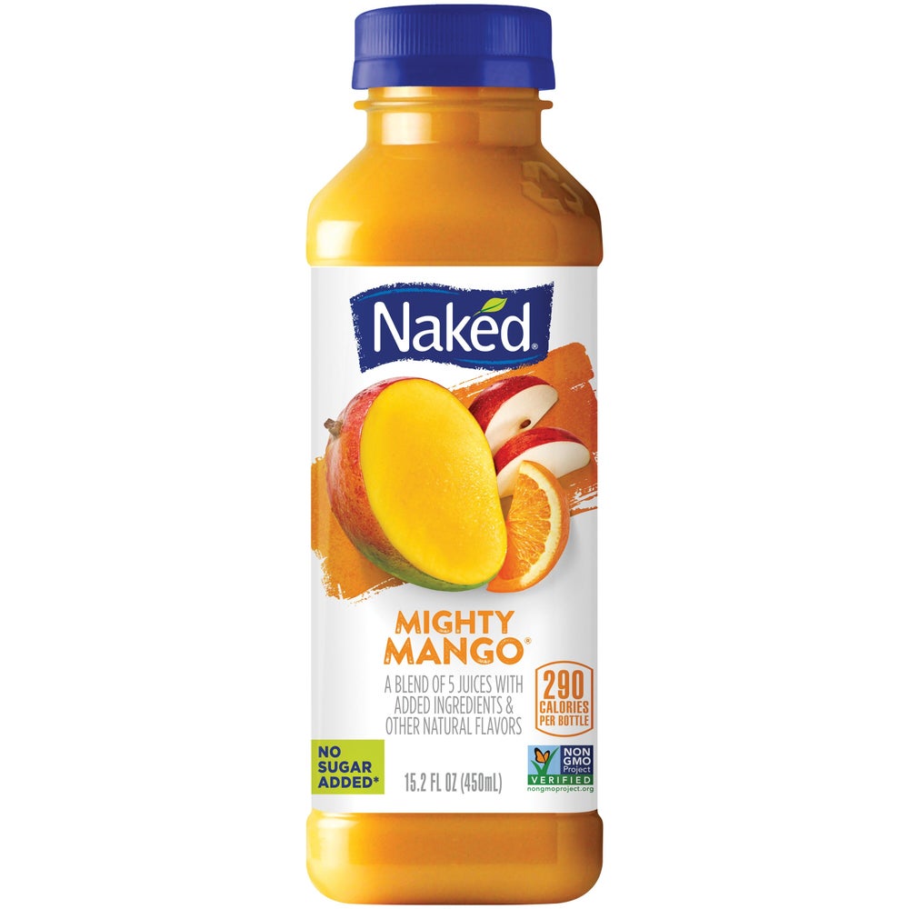 Naked Juice No Sugar Added Mighty Mango Juice Smoothie, 100% Juice, Refrigerated, Single-Serve, 15.2 Fl Oz Bottle, 8/Case