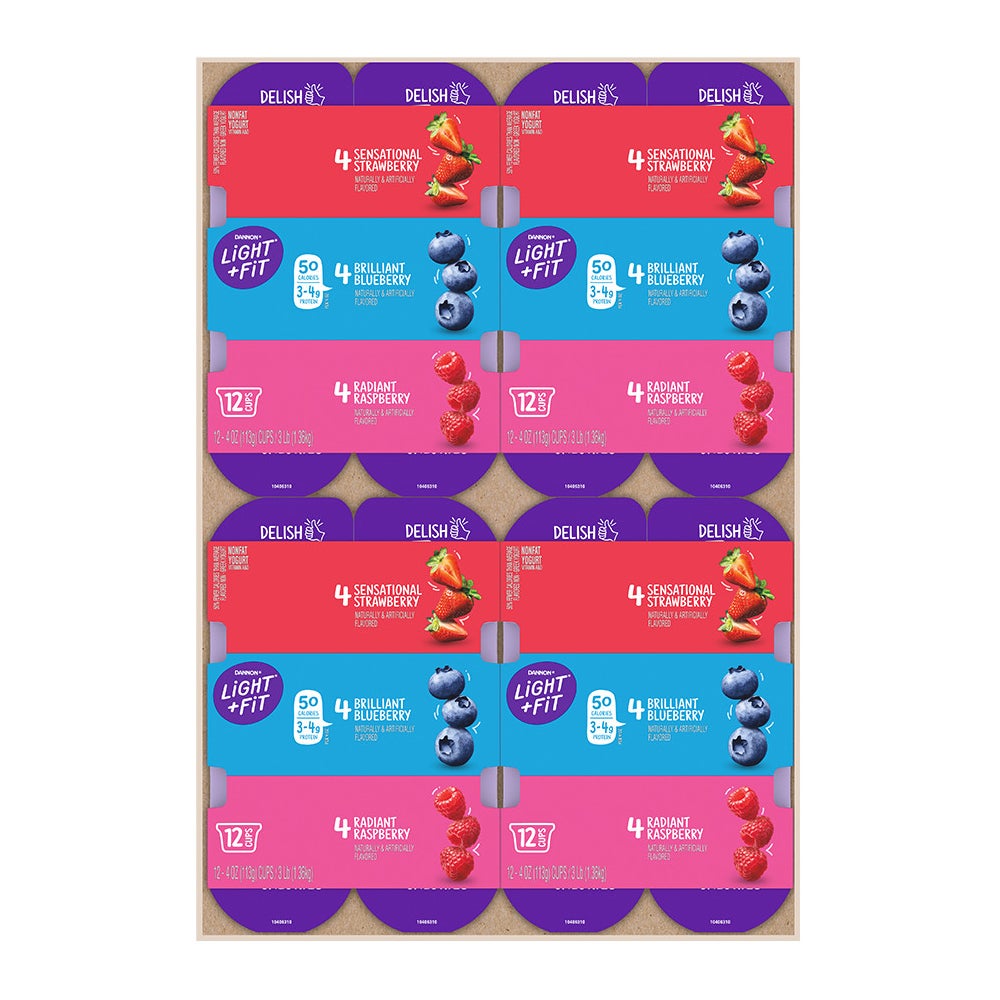 Dannon Light & Fit Nonfat Strawberry/Raspberry/Blueberry Yogurt, Cup, Variety Pack, 4 Ounce, 12 Ct Package, 4/Case