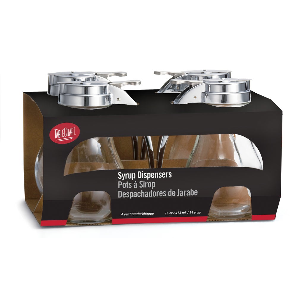 TableCraft 14 Ounce Syrup Servers, Glass with Stainless Steel Top, 4 Ct Package, 4/Case