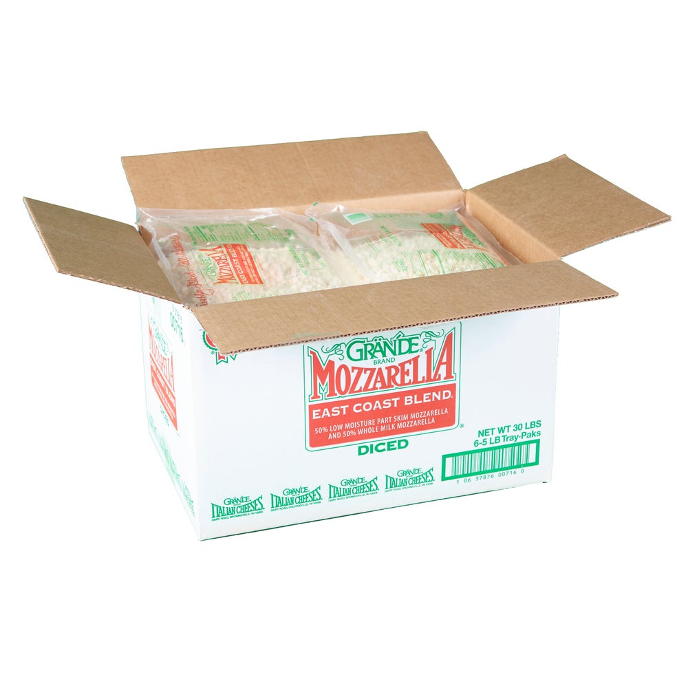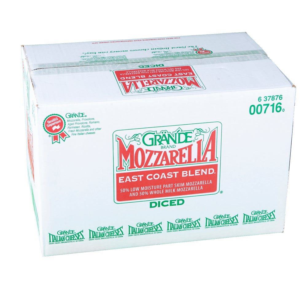 Grande East Coast Cheese Blend, Part-Skim & Whole Milk Mozzarella, Diced, 5 Lb Bag, 6/Case