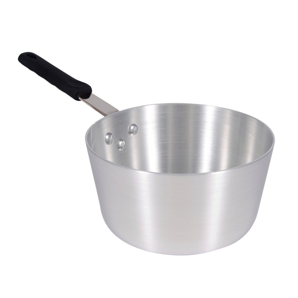 - This heavy-duty 3.75-quart aluminum sauce pan is a versatile tool for stirring, beating and making gravies or sauces. The heavy-gauge construction provides strength and even heat distribution.