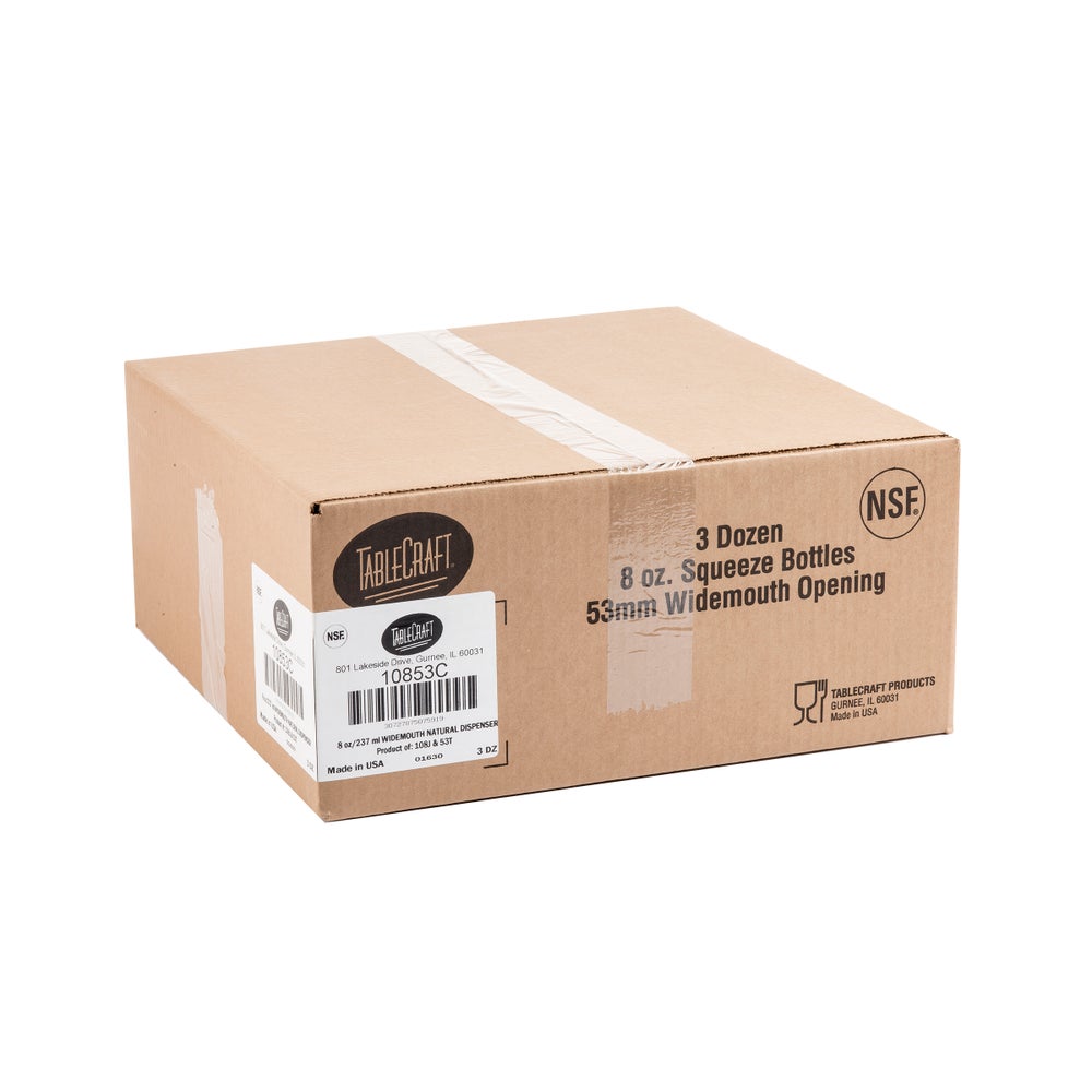 TableCraft 8 Ounce Wide-Mouth Squeeze Bottles, Clear, Polyethylene, 36/Case