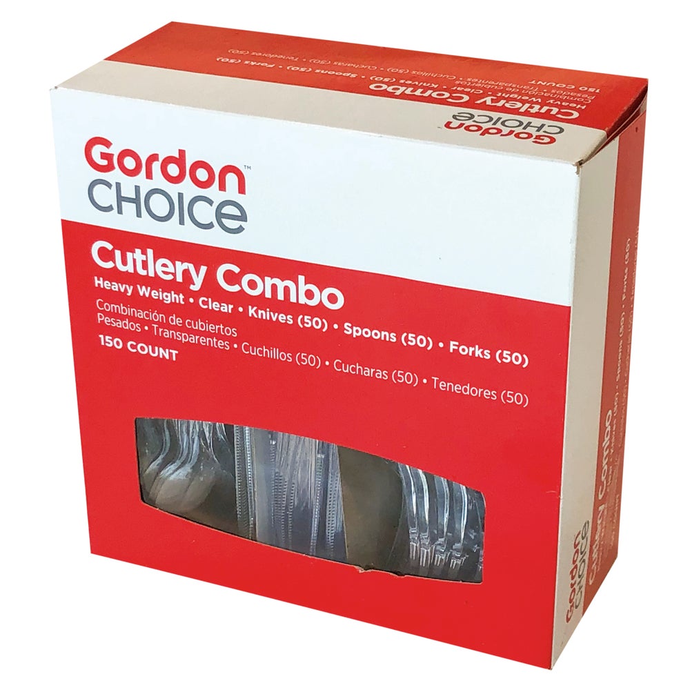 Gordon Choice Clear Heavyweight Cutlery, Fork/Knife/Spoon, Kit , 150 Ct Box, 14/Case