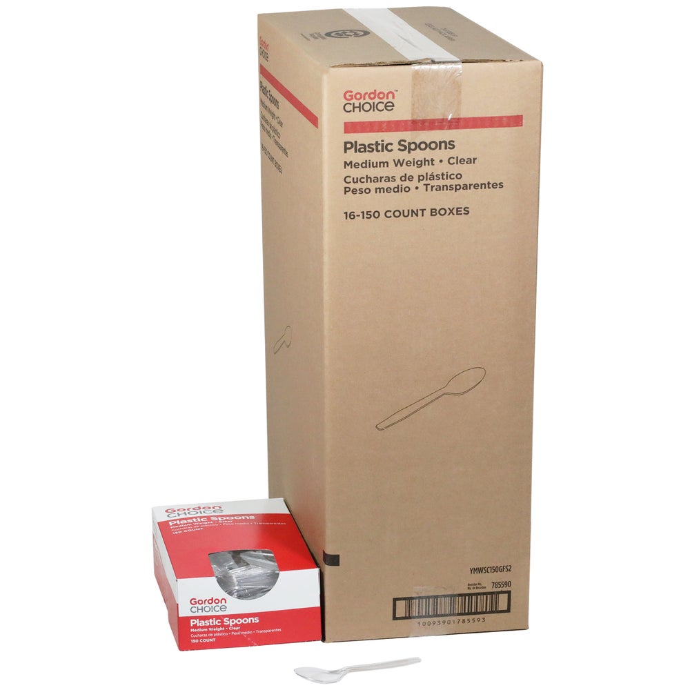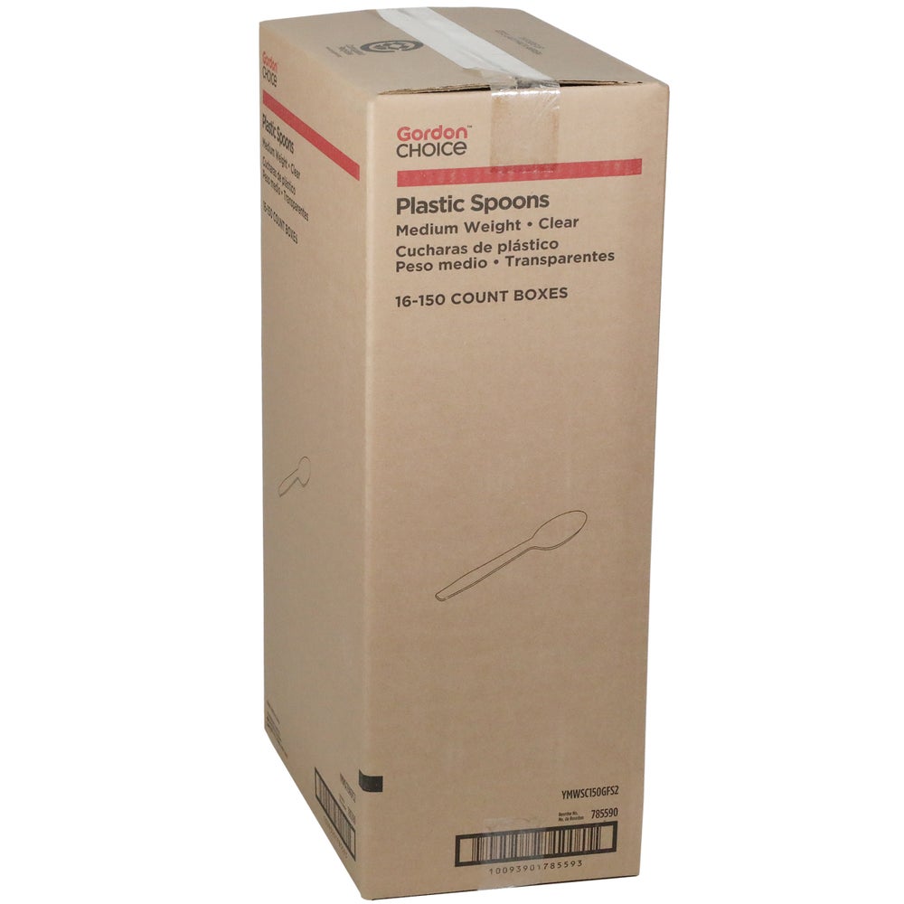 Gordon Choice Medium-Heavyweight Plastic Spoons, Clear, with Medium-Length Handles, Polystyrene, 150 Ct Box, 16/Case
