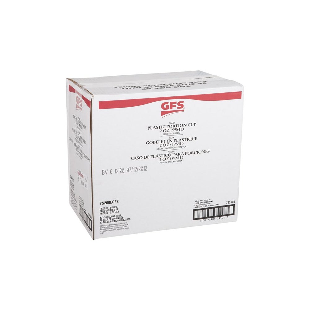 Gordon Choice 2 Ounce Plastic Souffle Portion Cups, Black, Polystyrene, 200 Ct Package, 12/Case