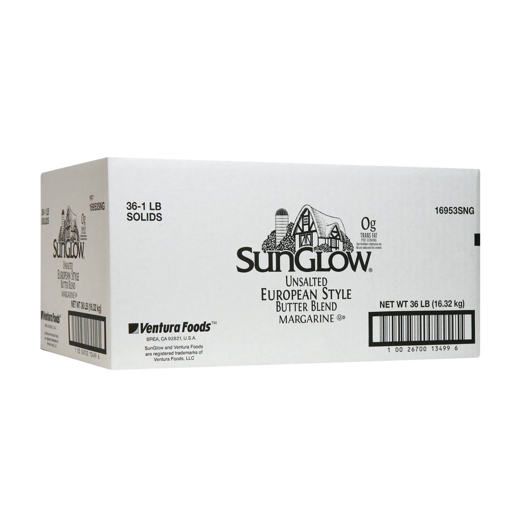Sun Glow Unsalted European Style Margarine & Butter Blend Prints, 1 Lb Package, 36/Case