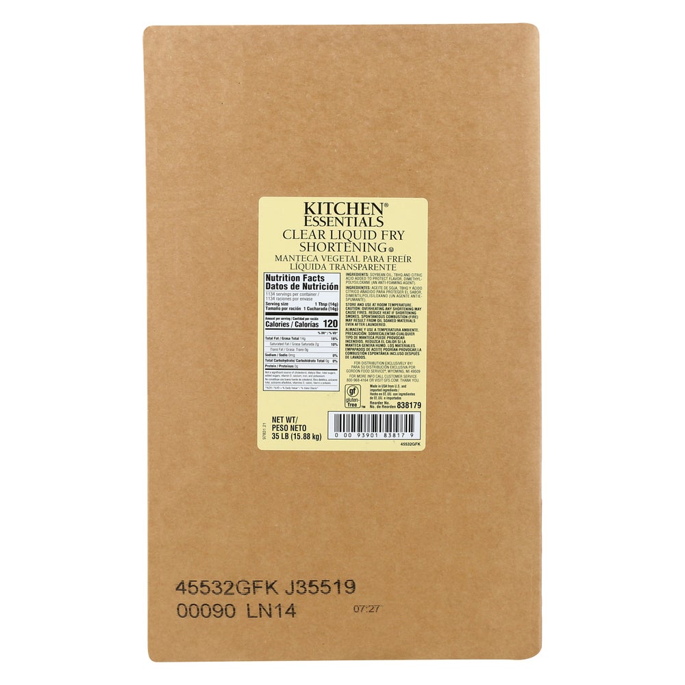 Kitchen Essentials Clear Soy Frying Shortening Oil, Liquid, No Trans Fat, 35 Lb Jug, 1/Case