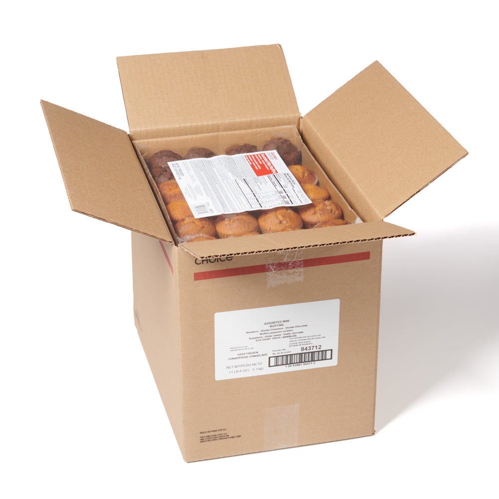 Gordon Choice 3-Flavor Assortment Mini Muffins, Fully Baked, Frozen, 24 Ct Tray, 6/Case