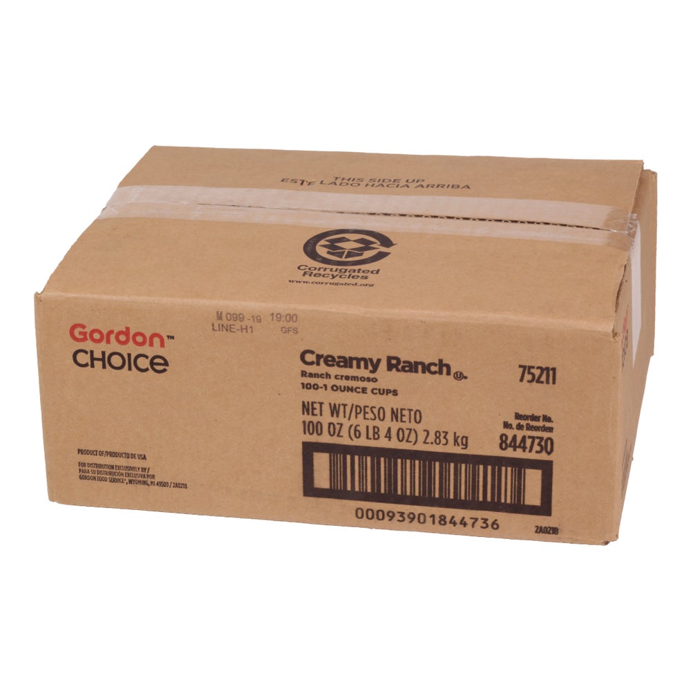 Gordon Choice Creamy Ranch Dressing, Dipping Cups, 1 Oz Piece, 100/Case