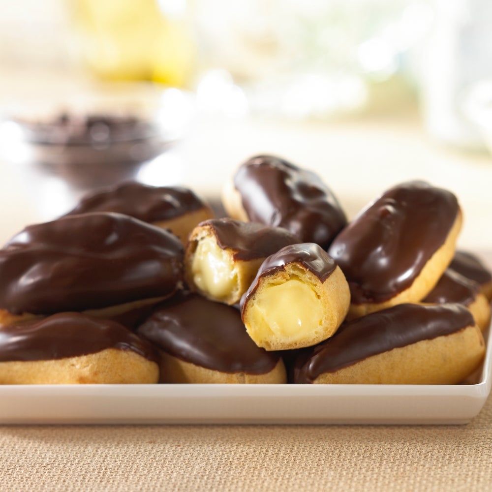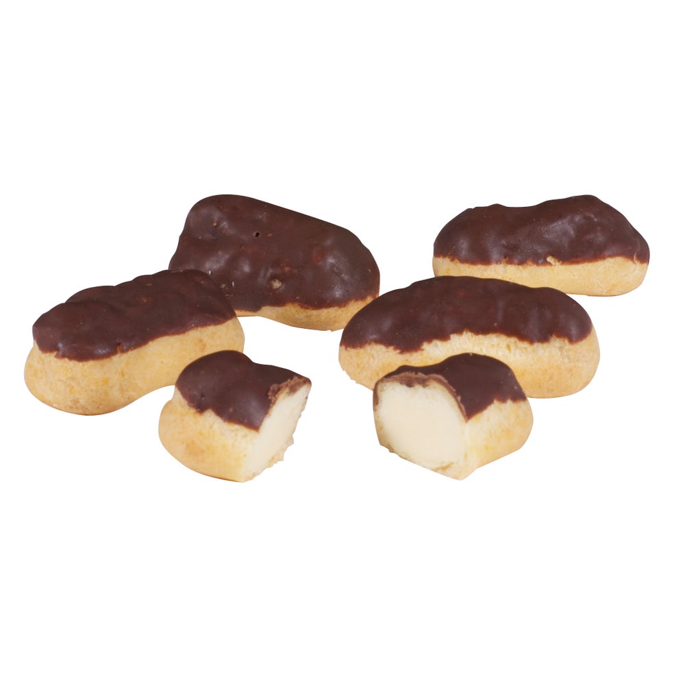 - These irresistible, chocolate-topped, mini eclairs are made from a delicate, European-style pastry filled with rich Bavarian custard cream. Thaw-and-serve convenience provides a fresh serving every time.