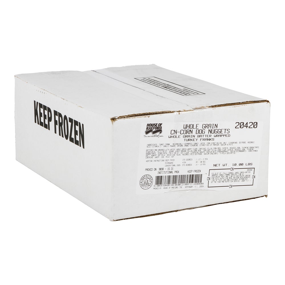 Corn Dogs, Turkey, Mini, Whole Grain, Frozen, 5 Lb Bag, 2 Per Case