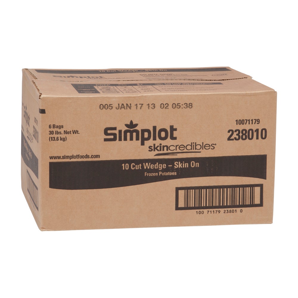 Simplot Wedge Cut French Fries, Skin-On, Frozen, 5 Lb Bag, 6/Case