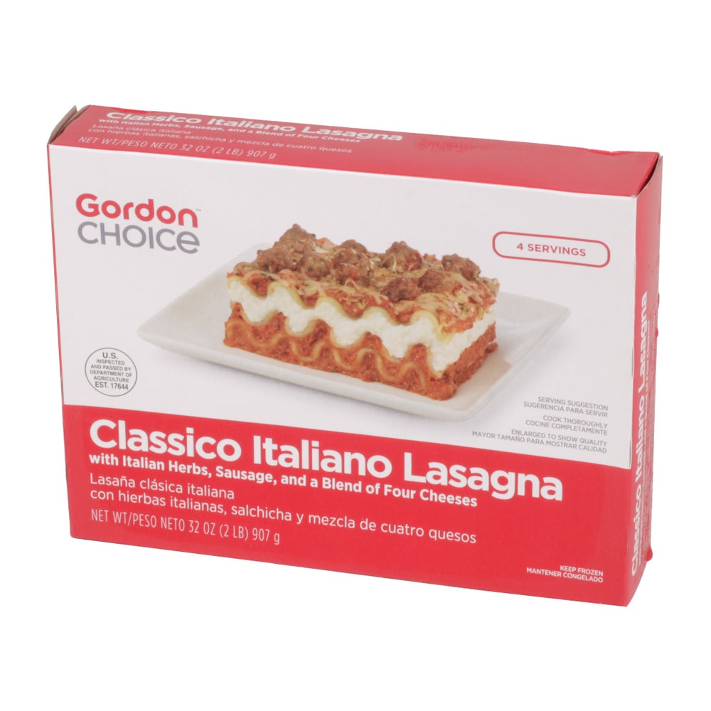 Gordon Choice Classic Italian Lasagna Entree, Frozen, 32 Oz Tray, 6/Case