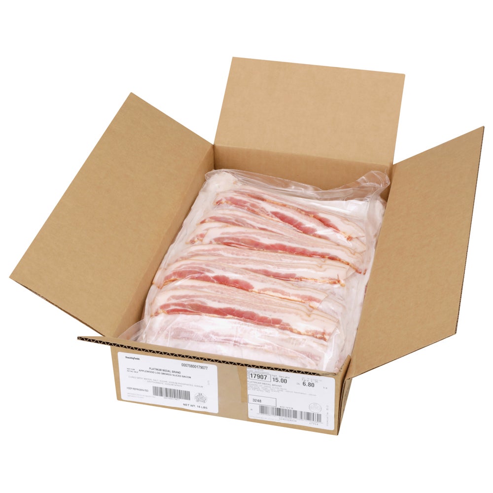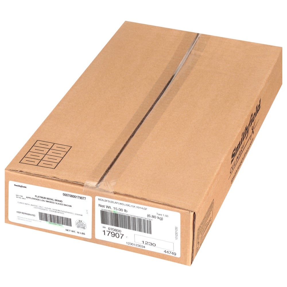 Bacon, Laid-Out, Applewood Smoked, 10-14 Slices Per Pound, Refrigerated, 15 Lb Package