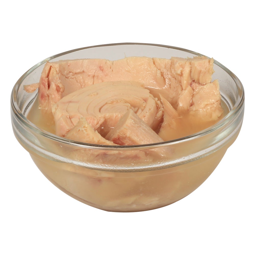 Este atún blanco sólido de captura silvestre y alta calidad ofrece una textura delicada con un sabor ligero y suave. Empaquetado herméticamente en agua, el atún proporciona filetes de corte suave con muy poca desmenuzación. El atún está listo para usar.