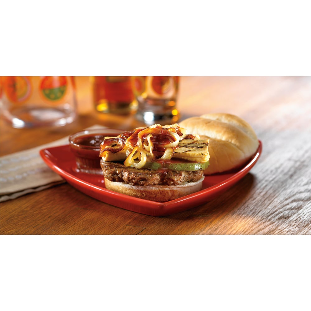 - Tiernas y jugosas, estas hamburguesas de res gruesas y caseras tienen una textura carnosa con un sazonador especial au-jus para un sabor audaz y dinámico. La forma casera proporciona una apariencia de hamburguesa hecha a mano. Las hamburguesas de res de alta calidad y alta gama se proporcionan crudas y congeladas.