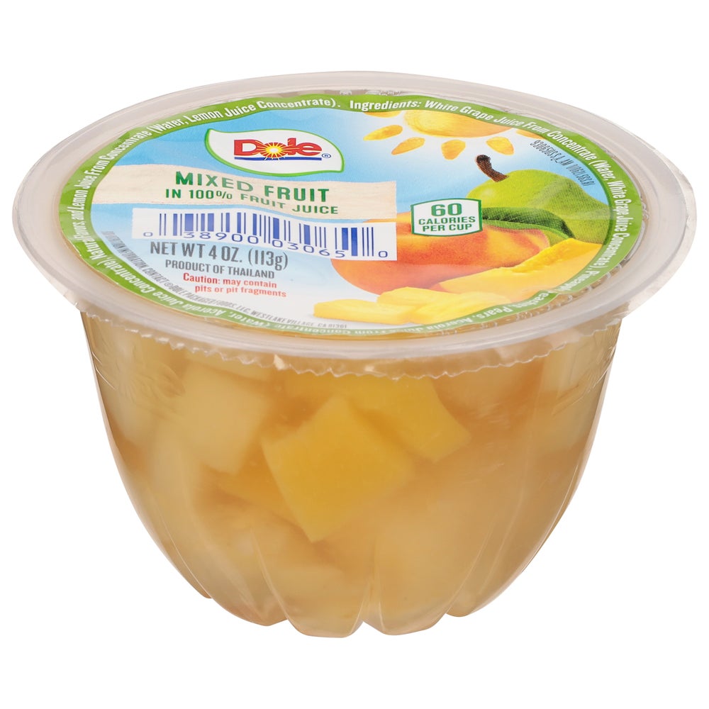 Mezcla de frutas en jugo, elegante, vaso de plástico