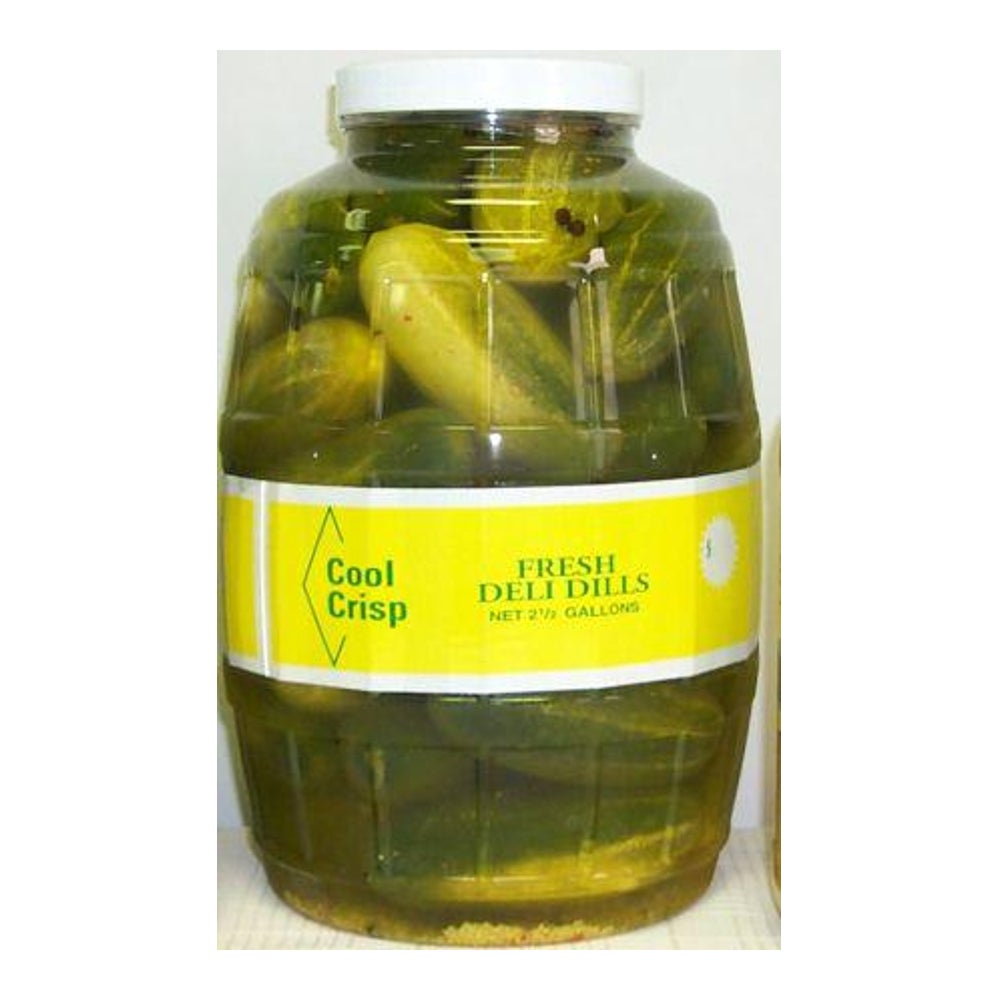 Pepinillos eneldo kosher enteros, 25-30 unidades, refrigerados, plástico, 2.5 Gal Frc, 2/Caj