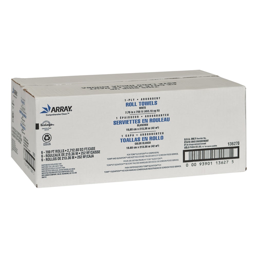 Toallas de rollo de 1 capa, blancas, 7.8 pulgadas, rollo de 700 pies, 700 Pie Rol, 6/Caj