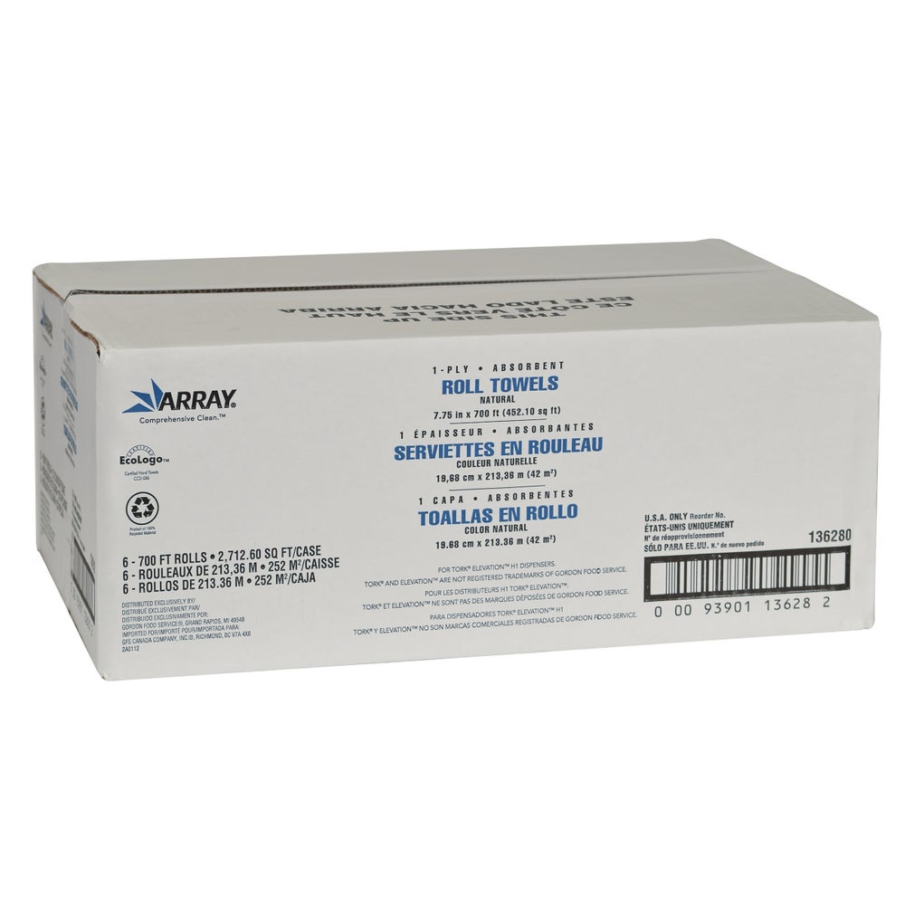 Toallas de rollo de 1 capa, natural, 7.8 pulgadas, rollo de 700 pies, 700 Pie Rol, 6/Caj