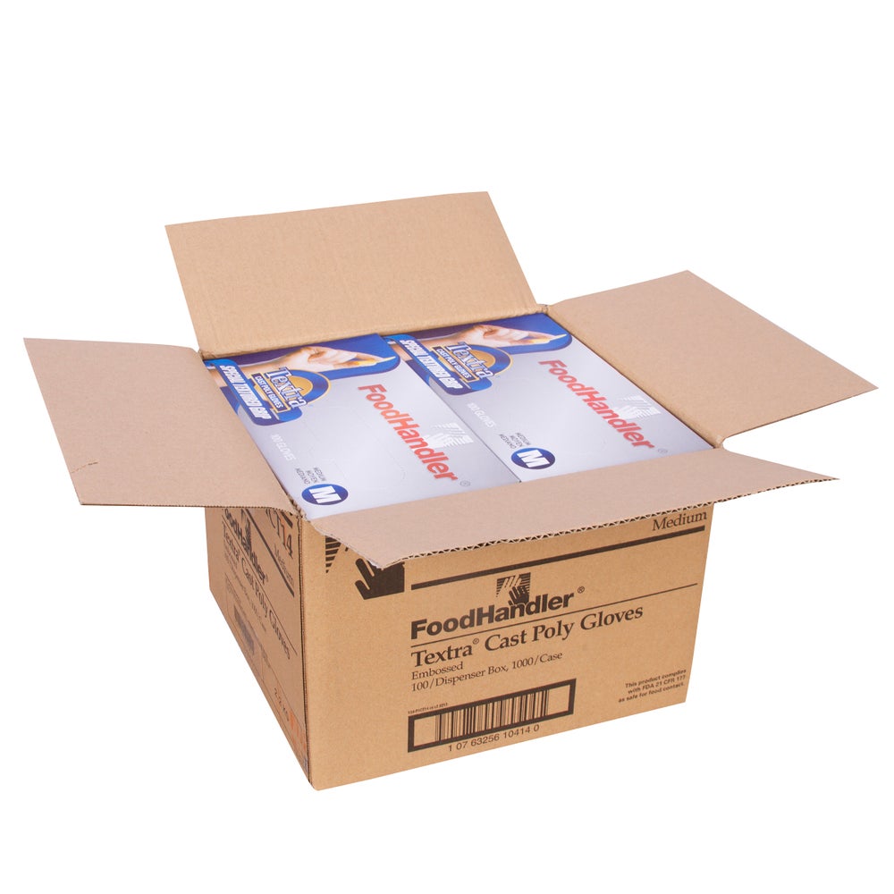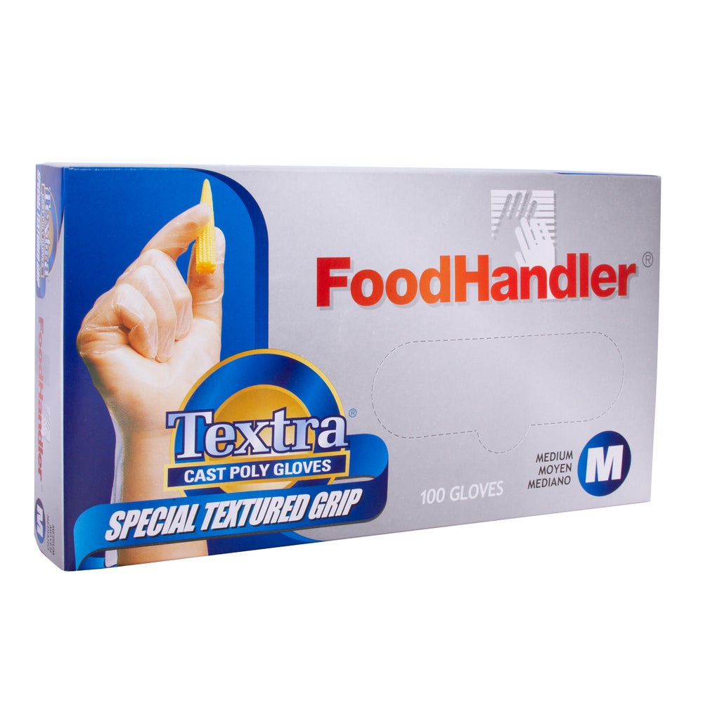 Guantes de polietileno fundido, transparentes, sin polvo, Textra, tamaño mediano, 100 Cdd Cjs, 10/Caj