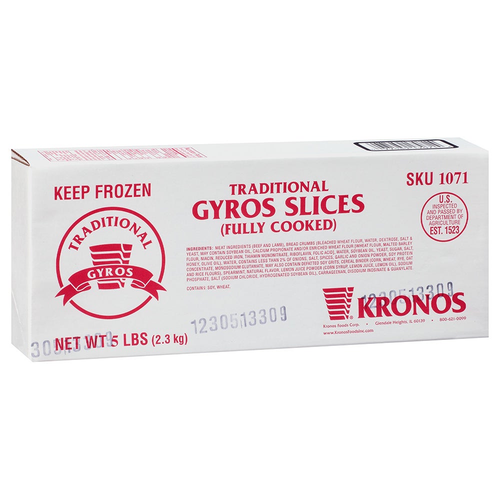 Carne para gyro de carne de res y cordero, en rodajas, cocinada, envasada a granel IQF, 5 Libr Ban, 4/Caj