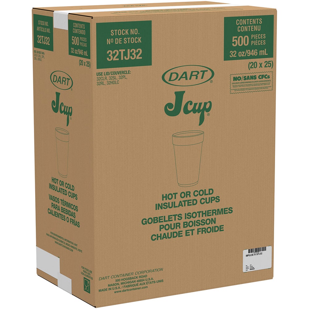 Vasos de espuma caliente y fría de 32 onzas, blanco, con cuentas, poliestireno, 25 Cdd Paq, 20/Caj