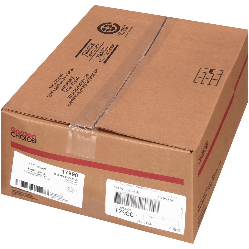 Jamón ahumado con agua agregada, sin hueso, promedio de 13 libras, fresco, pieza promedio de 13 libras, 13 Plb Pza, 2/Caj