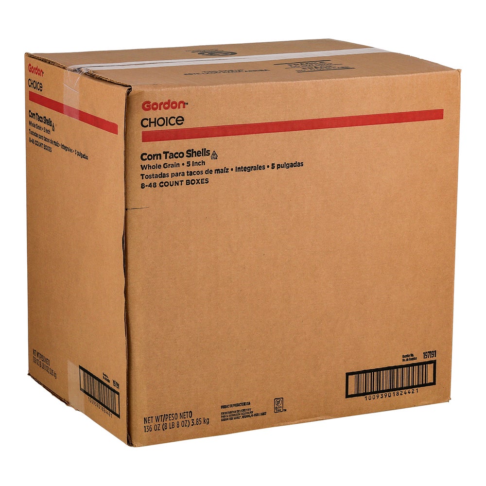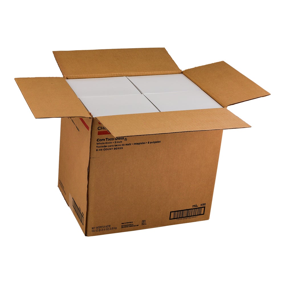 Tacos de maíz integral de 5 pulgadas, con vida útil estable, 48 Cdd Cjs, 8/Caj