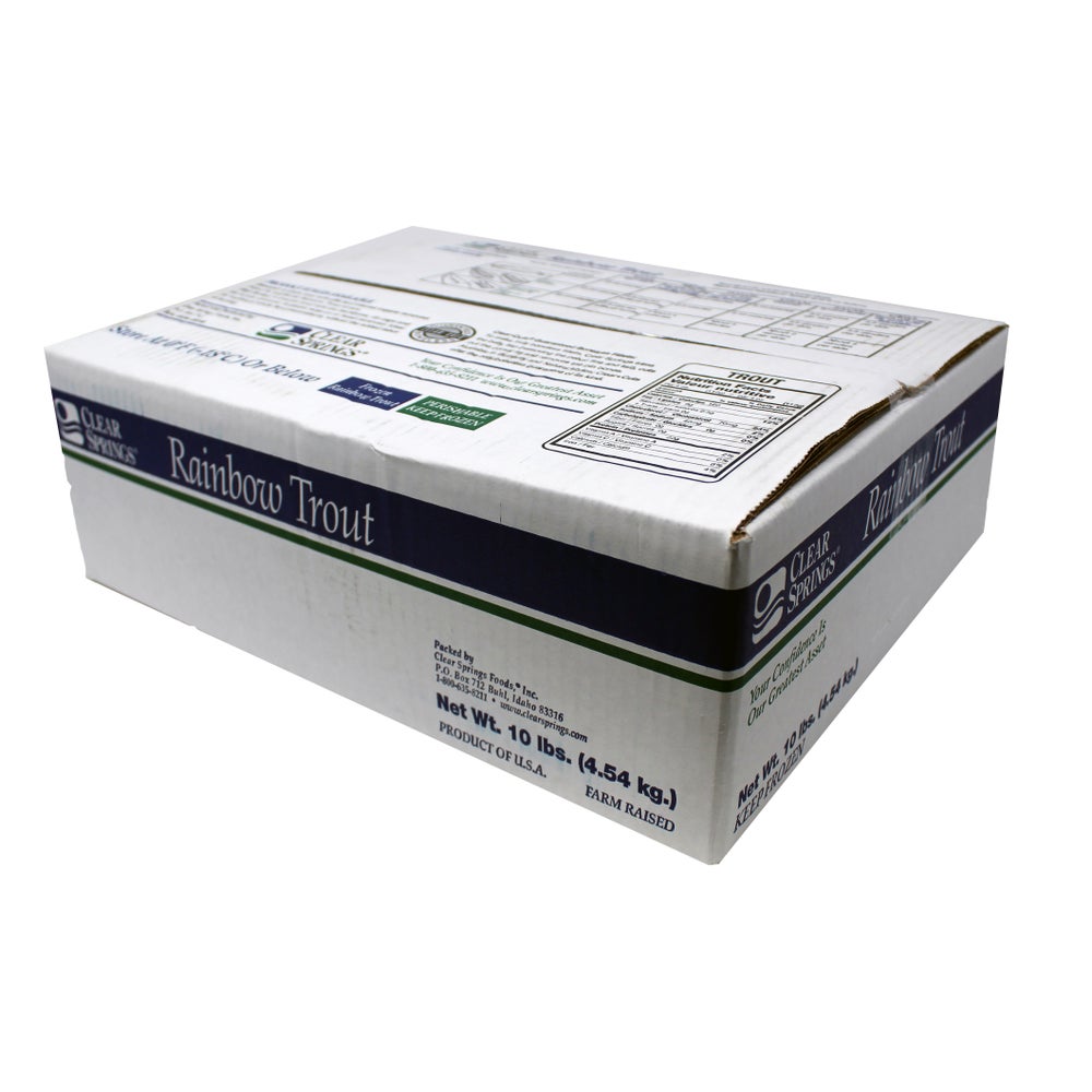 Filetes de trucha arco iris, criados en granjas, deshuesados con piel por un lado, corte transparente, 5 a 7 onzas, crudos, congelados, 10 Libr Bol, 1/Caj