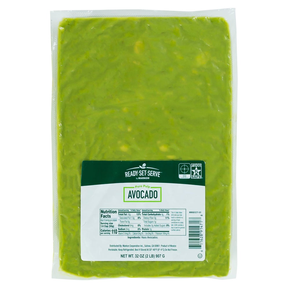 Esta pulpa pura contiene 100% aguacates Hass y tiene un sabor mantecoso y a nuez con notas herbáceas. Completamente preparado, este producto es un ingrediente listo para usar y de valor agregado.; Esta pulpa pura contiene 100% aguacates Hass y tiene un sabor mantecoso y a nuez con notas herbáceas. Completamente preparado, este producto es un ingrediente listo para usar y de valor agregado.- Corte fresco