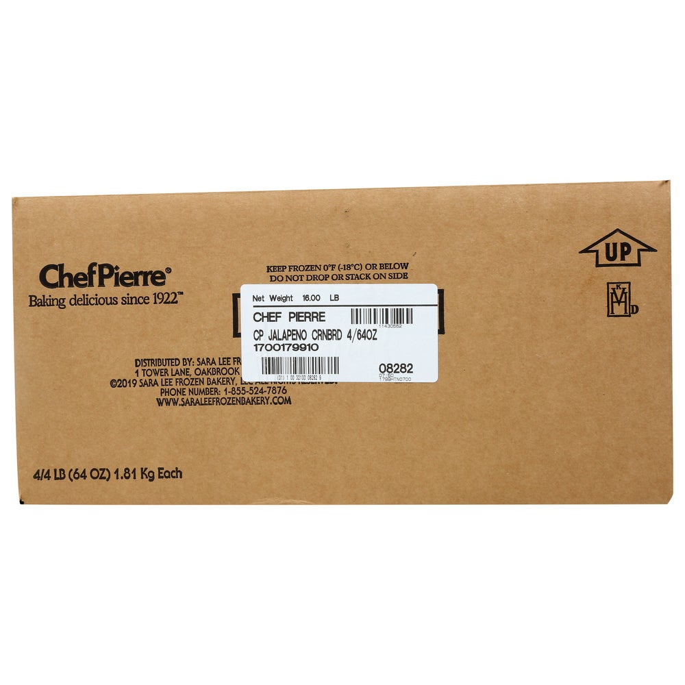 El Chef Pierre Pan de Maíz con jalapeño precortado le da ese toque casero a todo tu menú, del desayuno a la cena y a cualquier hora. Un pan de maíz húmedo y dulce, hecho con dos tipos de jalapeños para un sabor equilibrado entre dulce, ahumado y picante. Kosher KVH-D