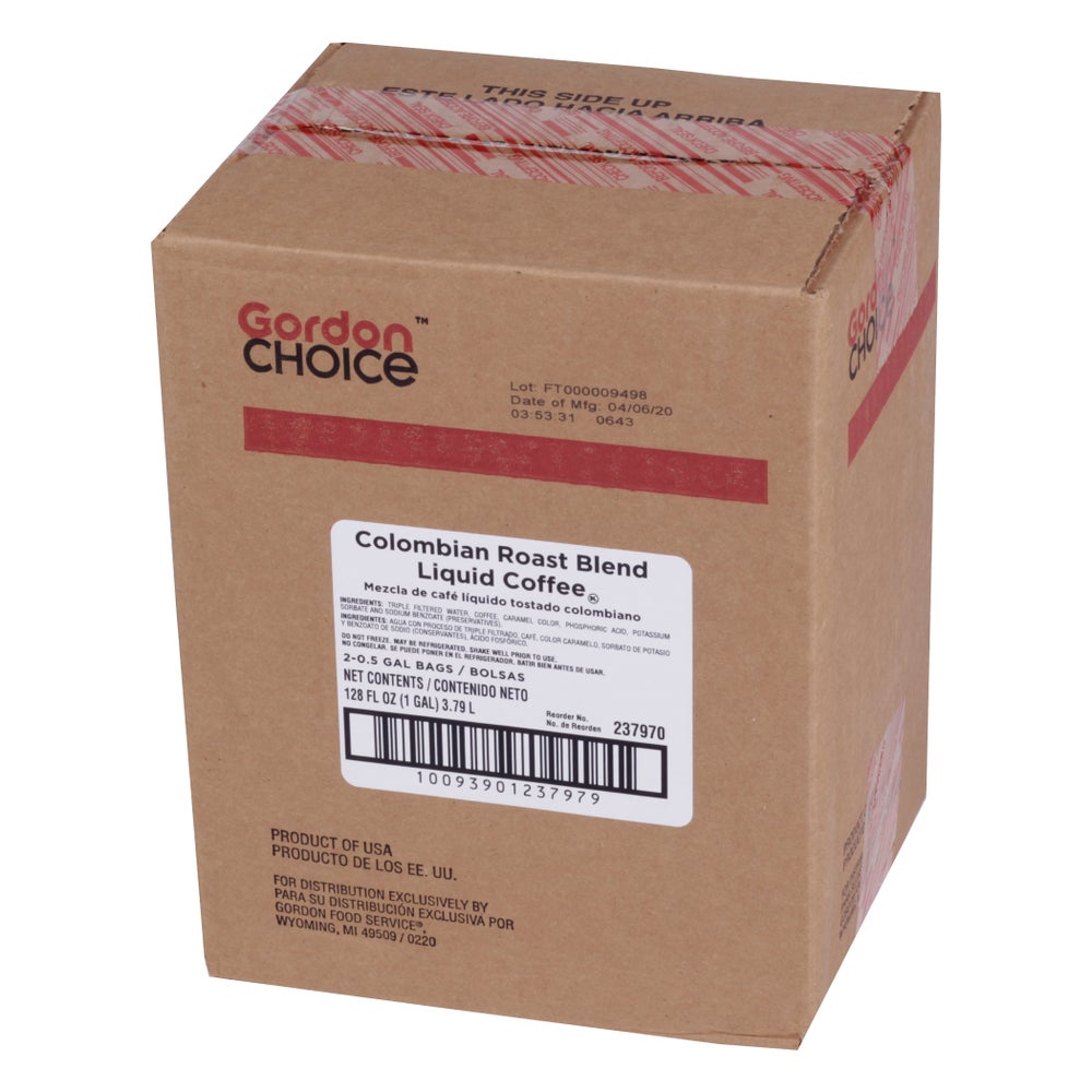 Café colombiano tostado líquido, 0.5 Gal Cjs, 2/Caj